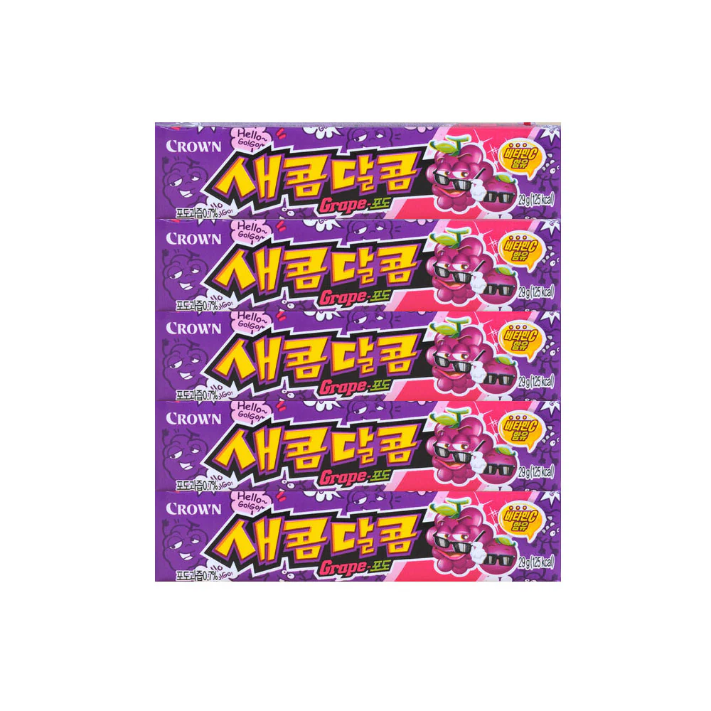 Kẹo vị nho Crown Sakom Dalkom Grape 29g mang đến hương vị ngọt thơm, thanh mát từ những trái nho chín mọng. Viên kẹo dẻo nhẹ, vị chua ngọt cân bằng, tan dần trong miệng mang lại cảm giác dễ chịu và sảng khoái. Bao bì nhỏ gọn, màu sắc tươi tắn, rất được yêu thích bởi giới trẻ Hàn Quốc và Việt Nam.
